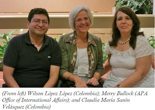 La convención anual de la American Psychological Association, celebrada en agosto en Orlando Florida, contó con la participación de varios representantes colombianos. La presidenta del Colegio Colombiano de Psicología (Claudia Marí a Sanín) y el Asesor de Relaciones Internacionales (Wilson López-López) mantuvieron la vocería como representantes oficiales de la psicología en Colombia. Cabe destacar que fue la única representación de Sur América en la convención.